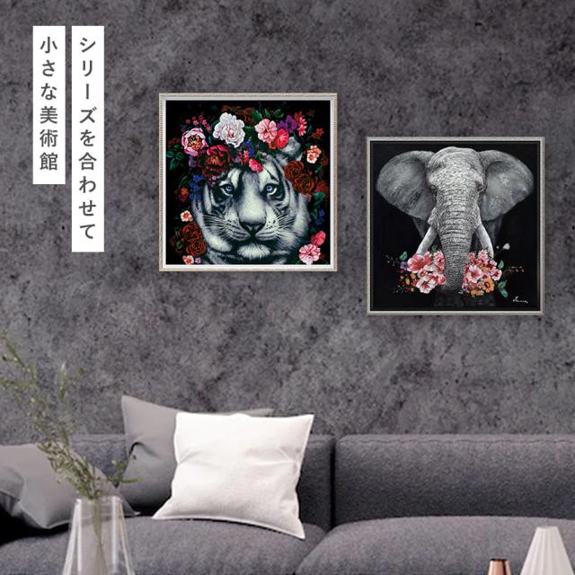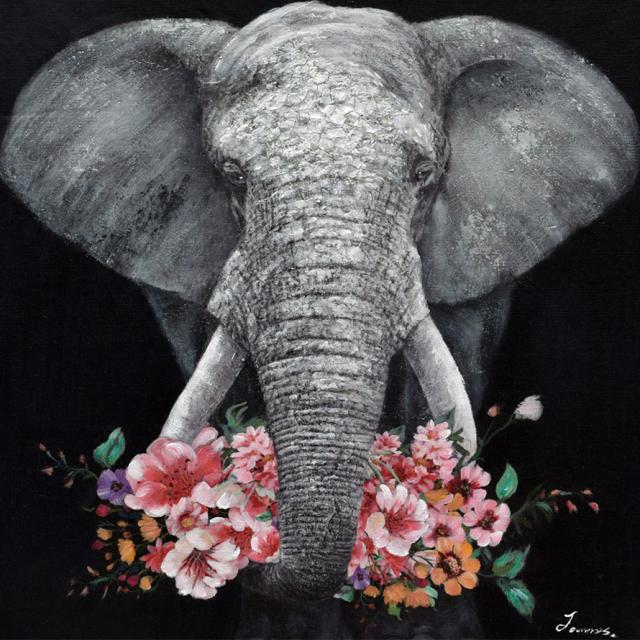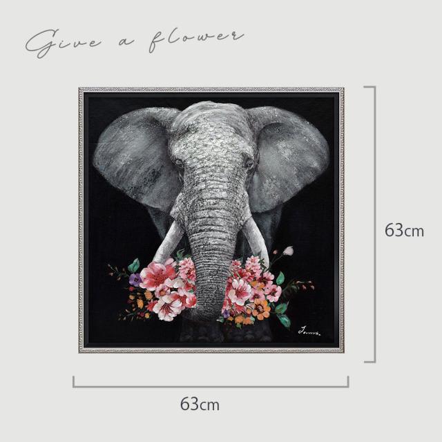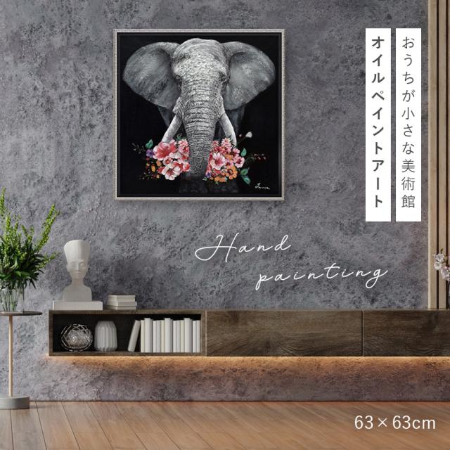 オイルペイント ハンドペイント 63×63cm アート 象 モダンアート 絵画 壁掛け 油絵 オイルペイント ギブ・ア・フラワー