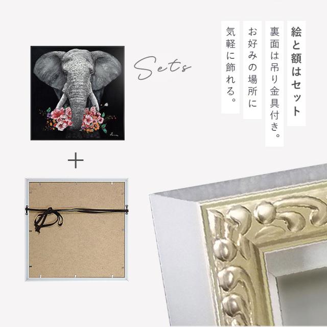 オイルペイント,油絵,オイルペイントアート,ぞう,ゾウ,象,elephant,花,フラワー,flower,カラフル,壁掛け,ハンドペイント,日本製,絵画,真四角,正方形,63cm×63cm,モダン,玄関,インテリア,アート,かわいい,おしゃれ,四角,額入り,額縁,ほっこり,癒し,インテリアパネル,モダンアート,ギフト,新築祝い,開店祝い,結婚祝い,出産祝い,誕生祝い,お手入れ,鮮やか,高級感,ゴールド,パネル,ギャラリー,吊金具付き,オフィス,美術,新生活,リビング,寝室,洗面,セット,ゴージャス,エレガント,華やか,あたたかい,雰囲気,馴染む,部屋,フィット,アンティーク,廊下,シリーズ,美術館,自宅