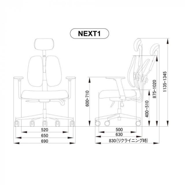 | サイズ | 総幅690×奥行630〜830(リクライニング時)×高さ1135〜1345mm、座高400〜510mm 個装サイズ:61×58×41cm |