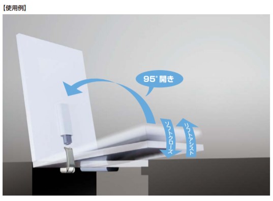 本品のみでは閉めた天板の保持はできません。閉めた天板の先端側に受け部を設置してください。
