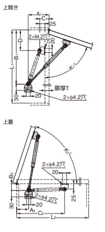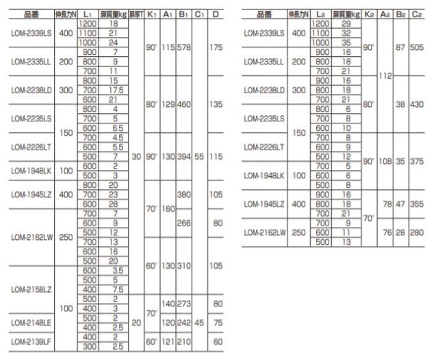 【注意】 ●衝撃や収縮方向以外へ大きな負荷が掛かる場合は、金属製アイレットをご使用ください。樹脂製アイレットは破損する恐れがあります。 【別売品】 ●ブラケット 【参考取付例】 ●本図はガススプリング2本使用時の参考例です。 ●使用温度:0〜54℃ 【サイズ】 ロッド径d:シリンダー径D:ストロークA:伸長時の長さB:アイレット径C 6:15:100:286.5:6.1 【注文コード】180-100-486 【品番】LOM-2159LU 伸長力N:伸長力kgf 150:15 [ 輸入 ] このマークの製品は輸入品のため「寸法・色調・作動感のばらつき」や、予告なく仕様変更等を行う場合があります。 製品内容は、部品としての品質範囲です。この部品を使用した最終製品の機能・性能・安全を保証するものではありません。 ※画像はイメージです。 ※パッケージ、仕様、品番などの変更が予告なく変更される場合が御座います。 カテゴリー |