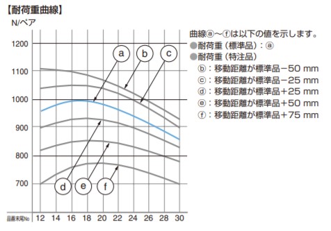移動距離の変更による耐荷重の変化は、耐荷重曲線をご覧ください。