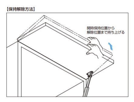 (範囲外では丁番やステーを破損したり、伸長時にストッパーが作動しない場合があります。)
