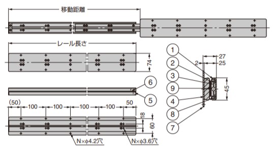 レール長さ:移動距離