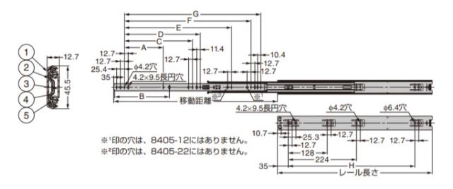 レール長さ:移動距離:A:B:C:D:E:F:G:H