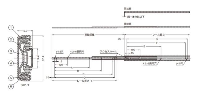 レール長さ:移動距離:A:B:C:D:E:F:G