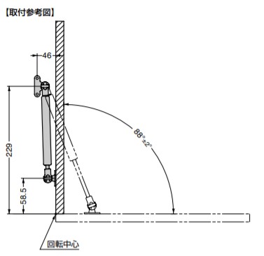下開きの扉をゆっくりと開く、伸長方向に働くダンパーです。