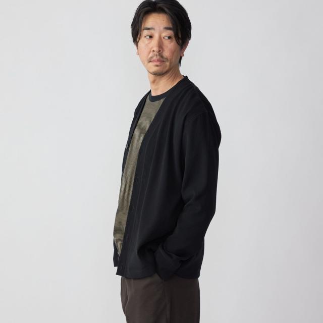 日本が世界に誇るファブリックメーカー”小松マテーレ”のダブルクロスを使用したVネックカーディガン。
