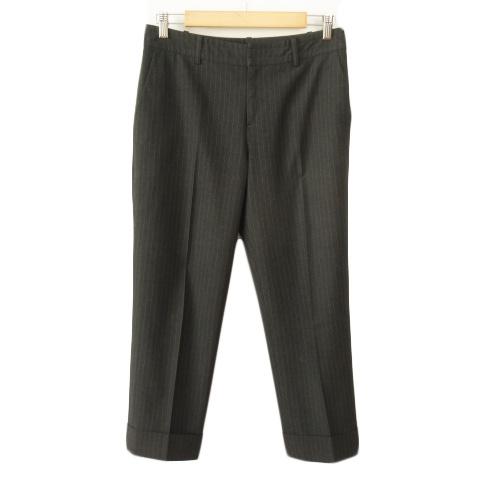 【中古】Sassily SHIPS シップス サシリー パンツ テーパード ストライプ ロールアップ L グレー レディース