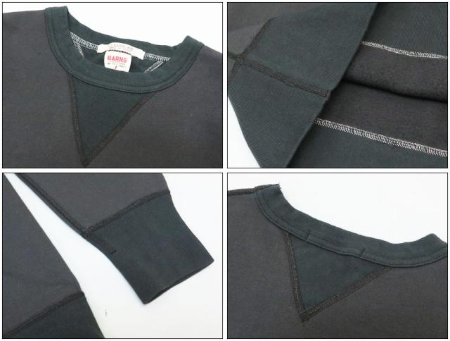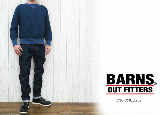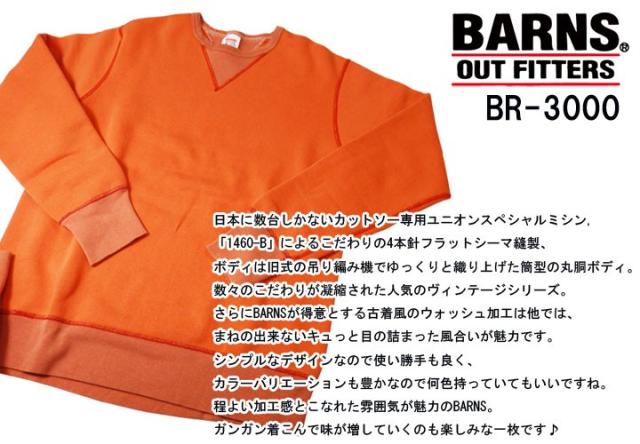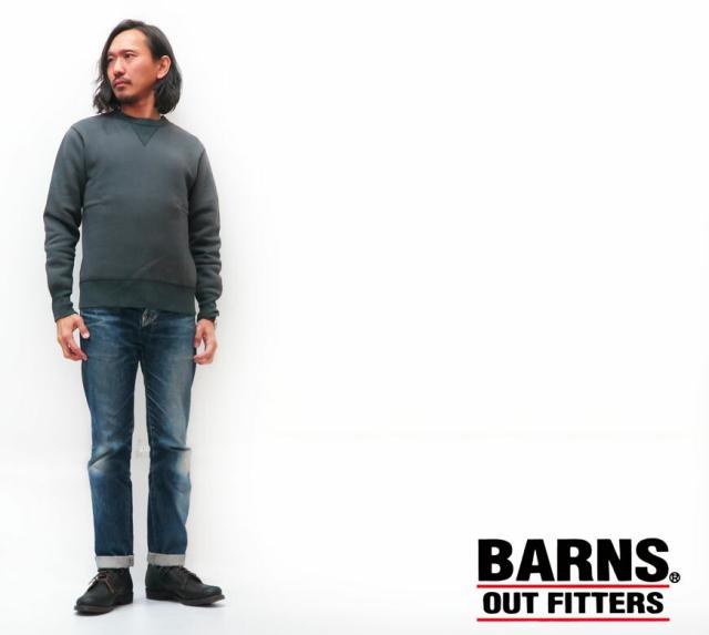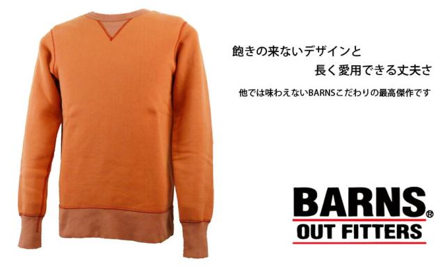 バーンズ BARNS フラットシーマー両Vガゼット・クルーネックスウェット 吊編み トレーナー br-3000