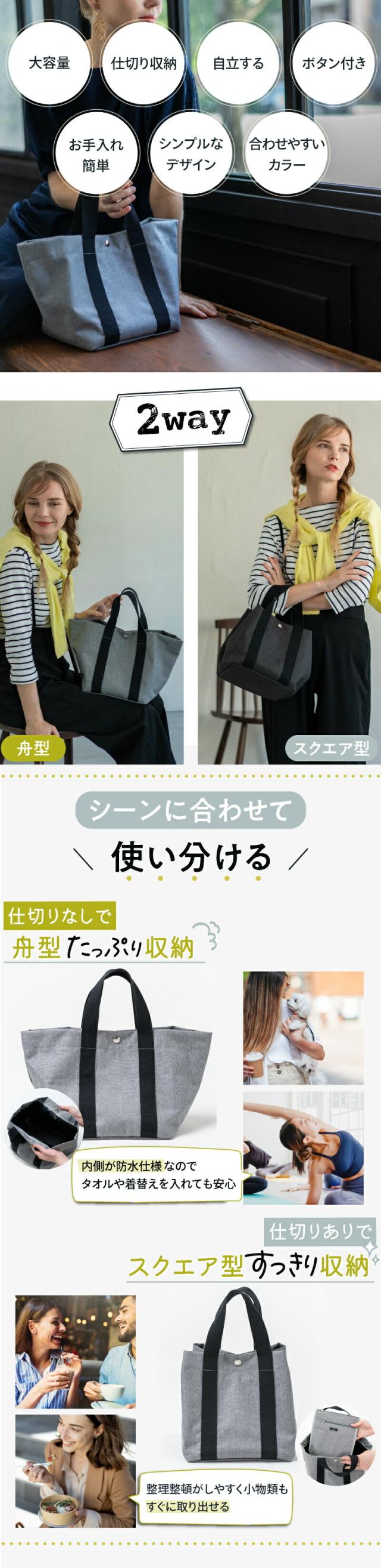 シーンに合わせて使い分けられる2wayトートバッグ。