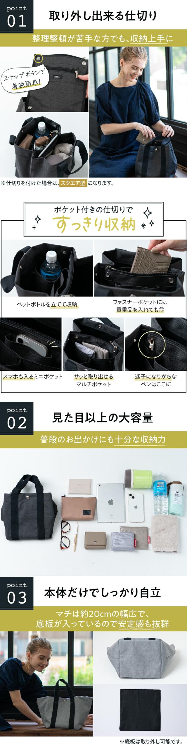 たっぷり収納もすっきり収納も叶う ミニトート