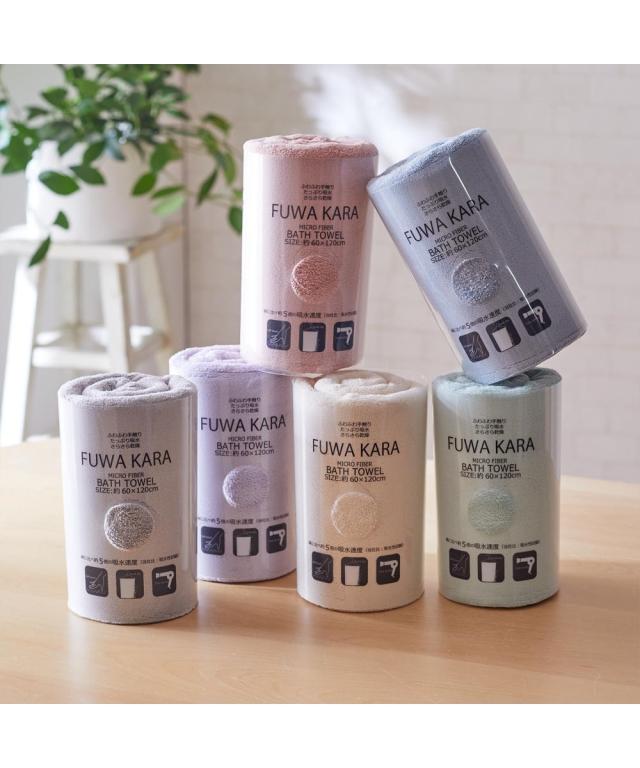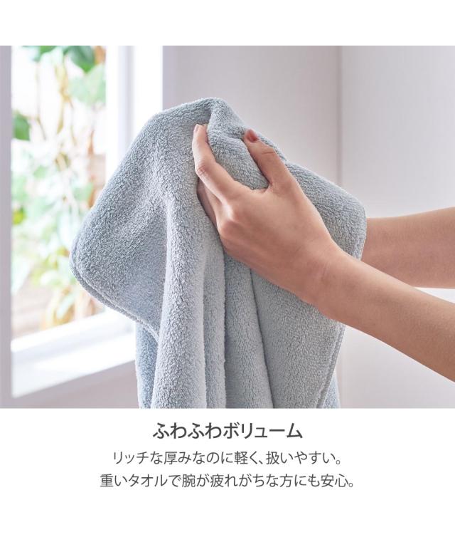 吸水性と速乾性に優れたマイクロファイバータオル。ふわふわでボリュームがありリッチな厚みなのに軽く、扱いやすい。