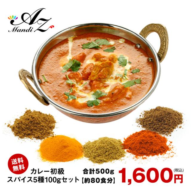 辛さのチリペッパーとガラムマサラを追加した5種の大容量100gセットです。