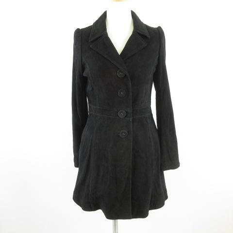 【中古】Me couture by me レザーコート ロング 長袖 スウェード やぎ革 黒 2 *E766 レディース