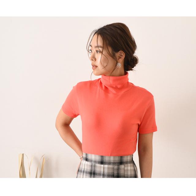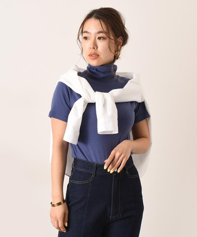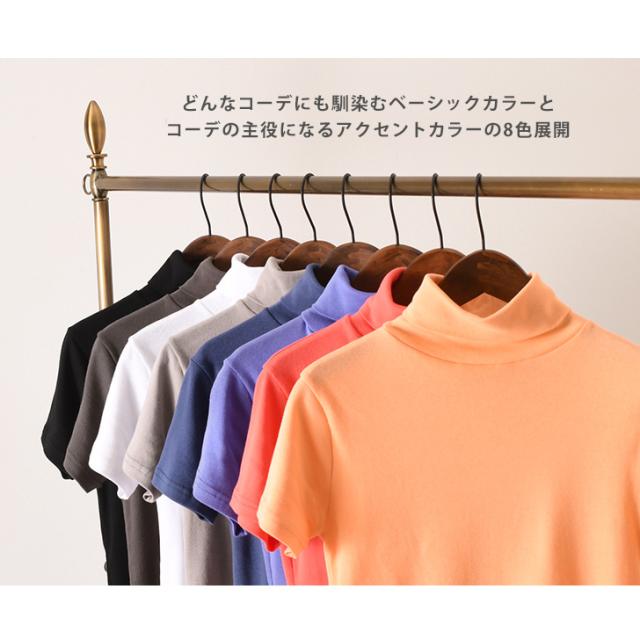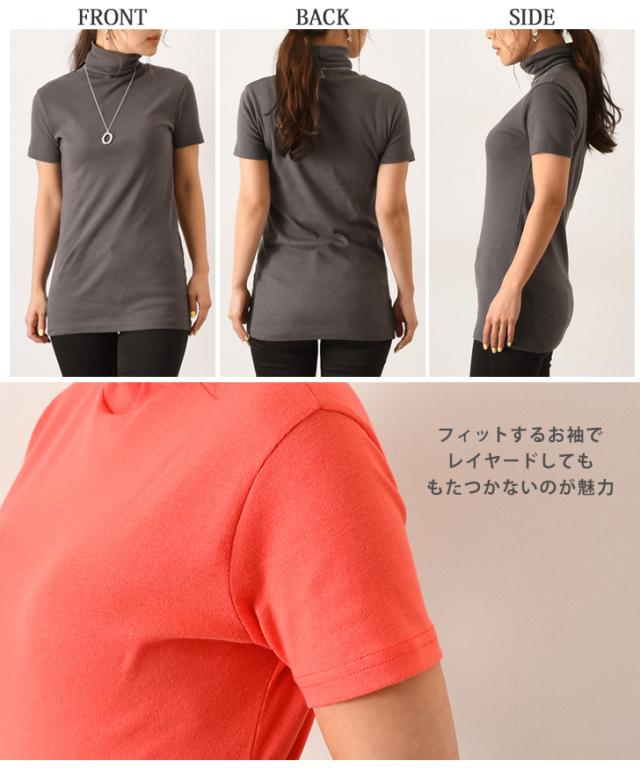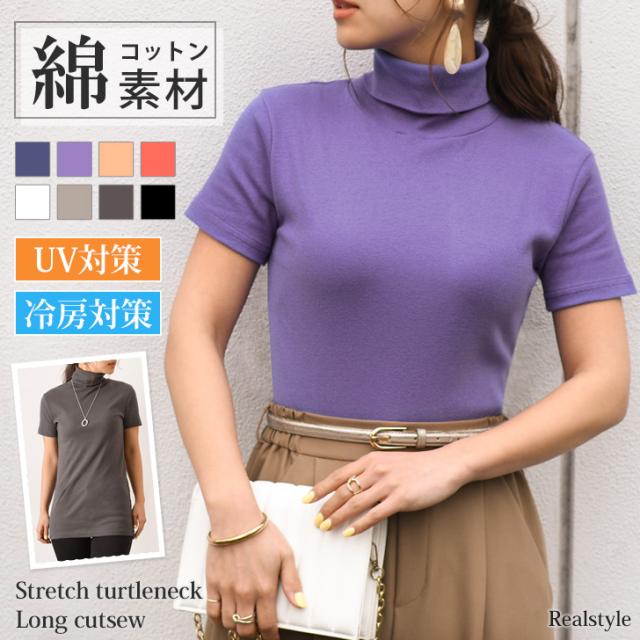 新作 カットソー レディース 半袖 タートルネック 綿 コットン ストレッチ ロング丈 トップス インナー 春夏 オフィス 仕事 OL 無地 首の日焼け防止 UVケア