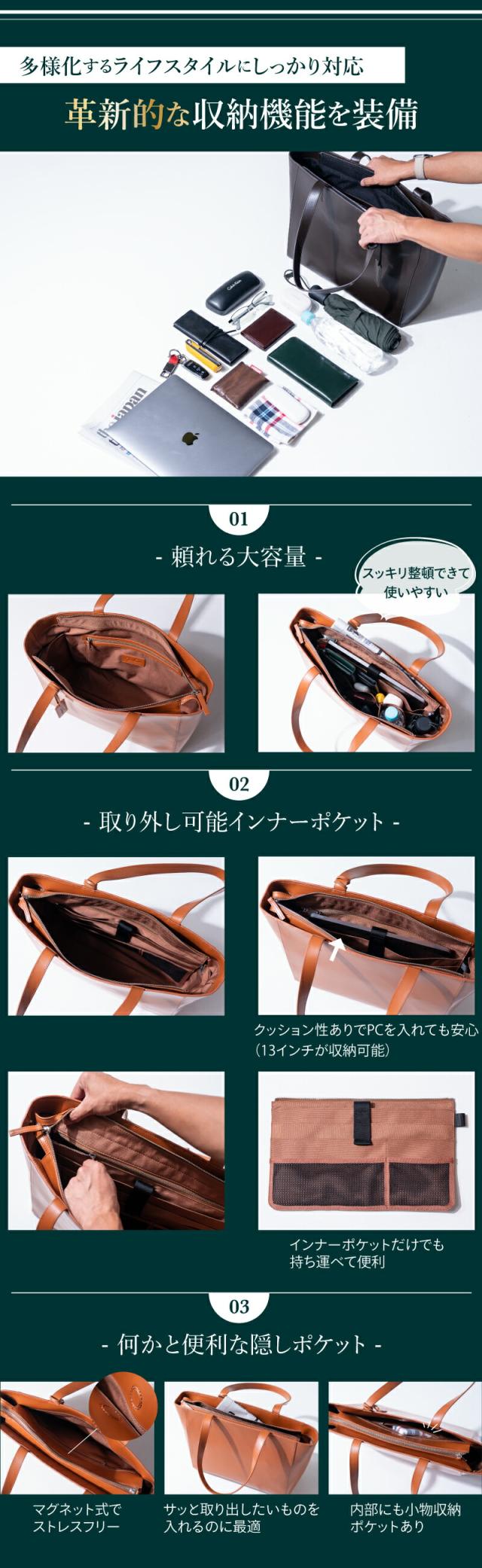 品質と機能性を兼ね備えた 本革トートバッグ