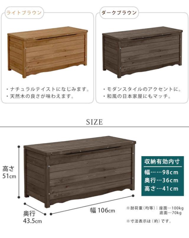 天然木 木製 モダン 幅106cm ステイン塗装 ベンチ イス いす 椅子 チェア 腰掛 腰掛け 背もたれなし 背もたれ無し 収納ベンチ 収納ボックス ボックスベンチ ガーデンベンチ 収納付き インテリア アウトドア 家具 新築 新居 新生活 新社会人 就職 新学期 進学 入学 引越し 引っ越し 引越 転居 転勤 単身赴任 一人暮らし ひとり暮らし ファミリー 必需品 必要なもの プレゼント ギフト 贈り物 新築祝い 引越し祝い リビング ダイニング 玄関 寝室 子供部屋 納戸 倉庫 土間 アウトドアリビング ベランダ バルコニー テラス 庭 ガーデン ガーデニング 園芸 園芸用品 園芸グッズ ガーデンファニチャー ガーデン家具 ガーデン用品 アウトドア家具 アウトドア用品 キャンプ用品 キャンプグッズ オモチャ箱 おもちゃ箱 オモチャ収納 おもちゃ収納 トイボックス トイBOX 防災 地震 震災 被災 災害 緊急 避難 避難所 非常時 対策 収納 保管 保存 荷物 調味料 乾物 食料 食材 ペットボトル ポリタンク 備蓄 備蓄食料 備蓄食材 備蓄食品 防災グッズ 防災用品 ストック ストッカー ナチュラル ナチュラルテイスト ナチュラルインテリア natural