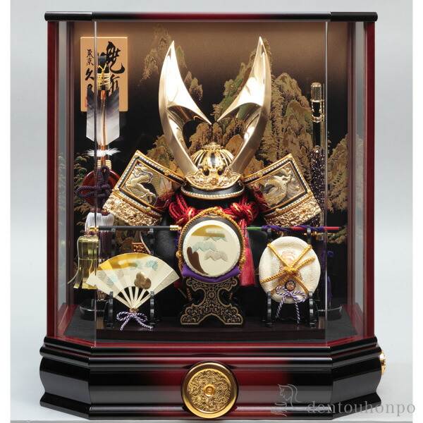 名入れ木札無料 「送料無料」 五月人形 兜飾り 収納飾り 銘木収納 正絹萌黄裾濃縅 13号 幅48cm ( 久月 五月人形 兜飾り コンパクト )