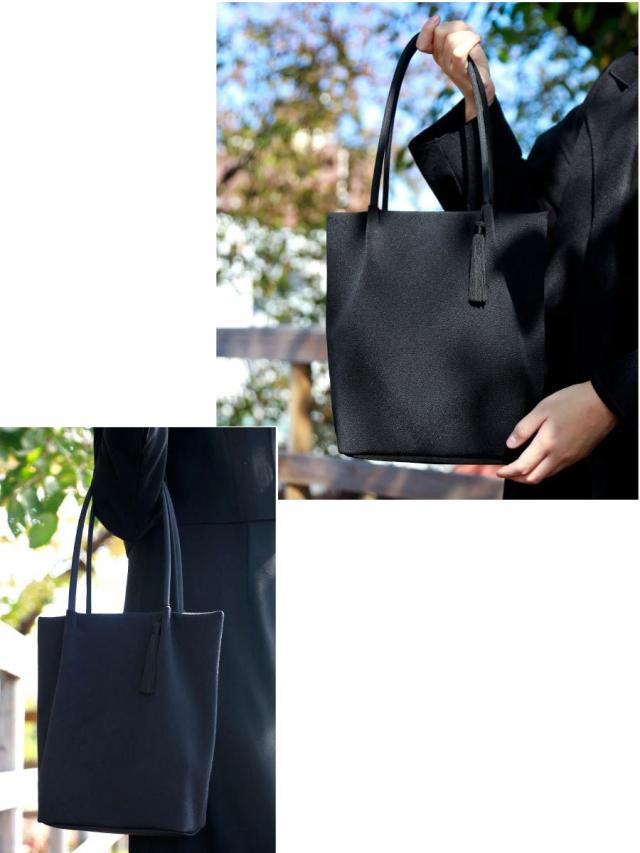 ■細かい凹凸がありソフトな風合いが特徴の丹後ちりめんを使って日本で縫製したフォーマルバッグシリーズです ■セミB5(ノートサイズ)が収納できる縦型のトートスタイル。肩掛けすることもできるので入学式・卒業式などのセレモニーにもお勧めです ■開口部はマグホック式 ■のし袋の持ち歩きに必要な袱紗(ふくさ)がセットになっています |