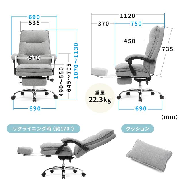 ファブリックチェア リクライニングチェア ソファチェア 収納式オットマン付き ダブルクッション 最大傾斜角170° アームレスト ランバーサポート[150-SNC132]