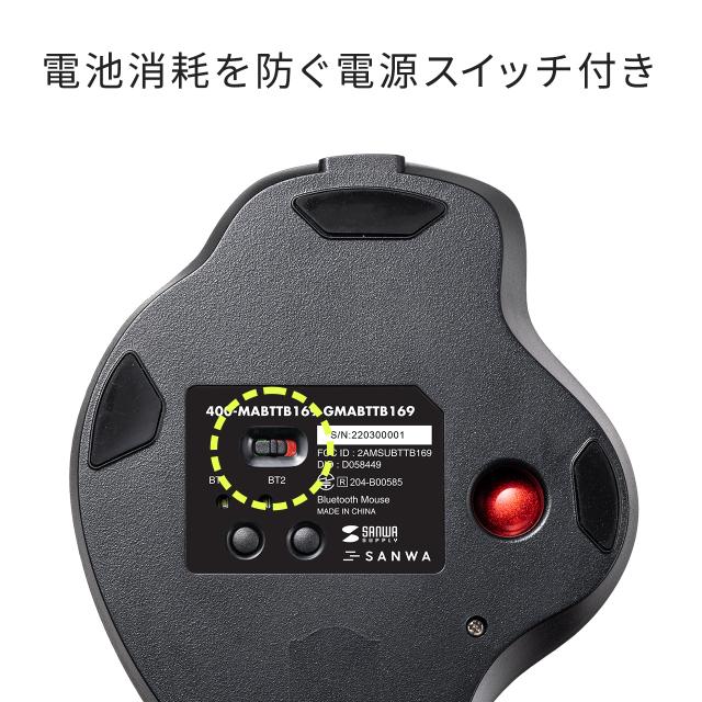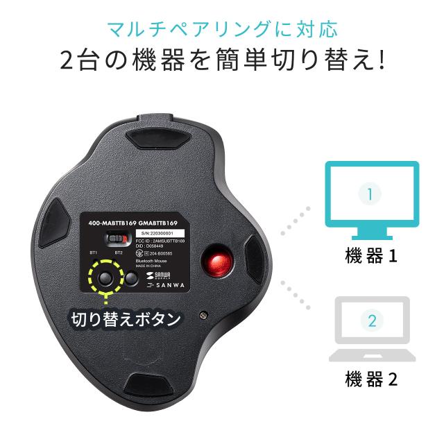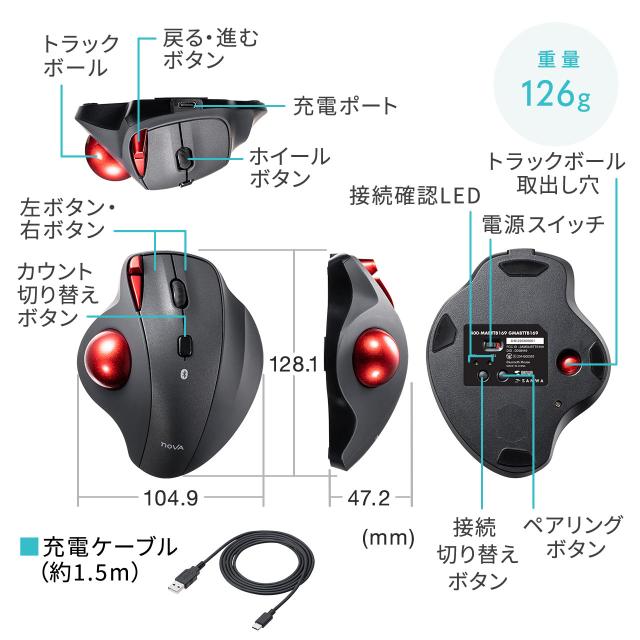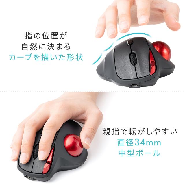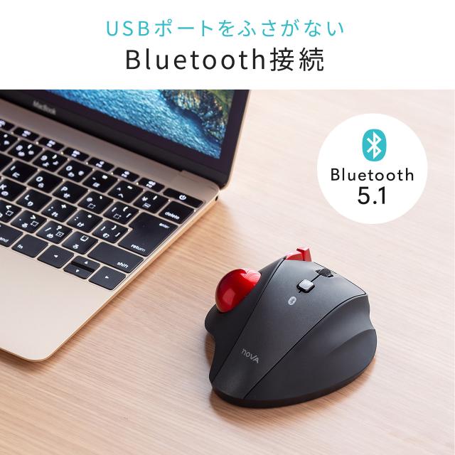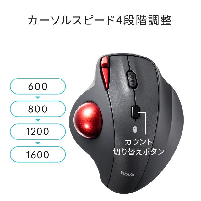 トラックボールマウス Bluetoothトラックボール 静音 5ボタン 充電式 マルチペアリング 34mmボール エルゴノミクス カウント切り替え NOVA[400-MABTTB169]