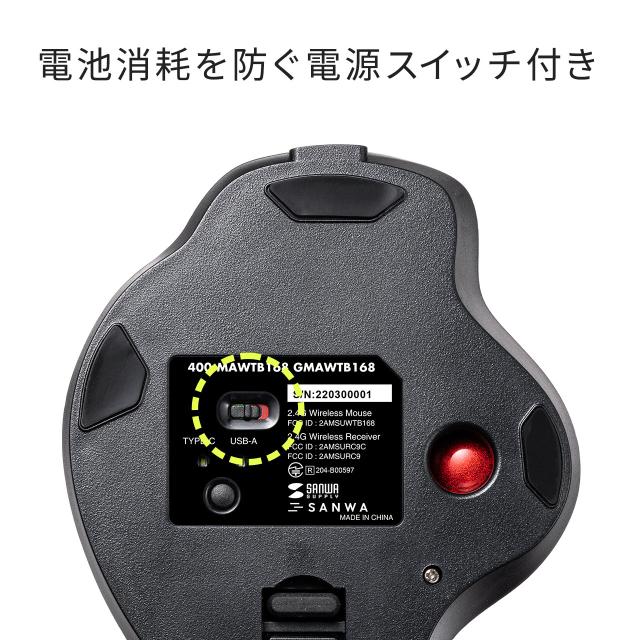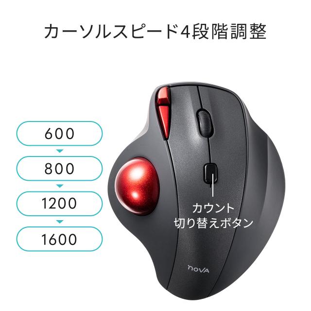 トラックボールマウス ワイヤレストラックボール Type-A Type-C 静音 5ボタン 充電式 34mmボール エルゴノミクス カウント切り替え NOVA[400-MAWTB168]