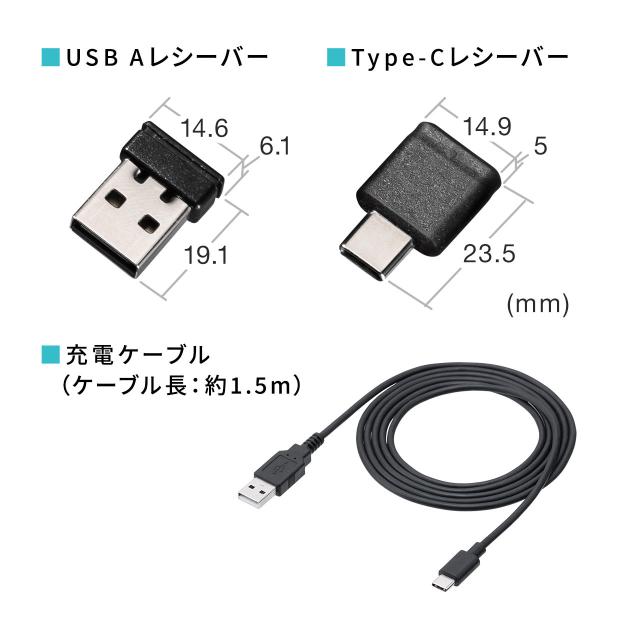 ●Type-A とType-C2の2種のワイヤレスレシーバーが付属し、接続先を切り替えて使用できます。