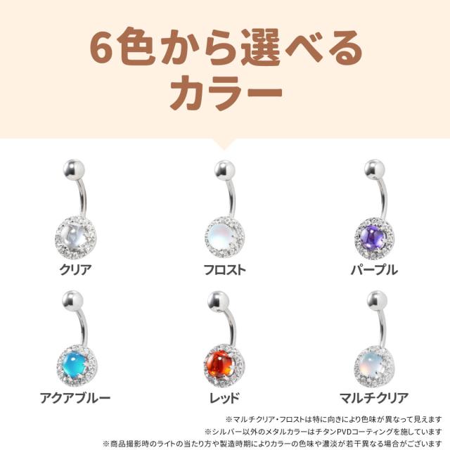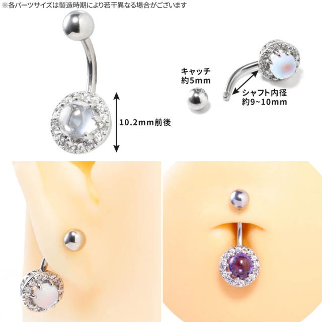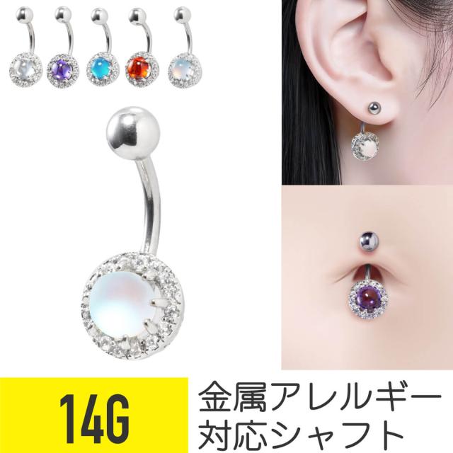 ドーム ストーン バナナバーベル 14G サージカルステンレス ジルコニア ジュエル へそピアス ボディピアス カーブドバーベル パヴェ