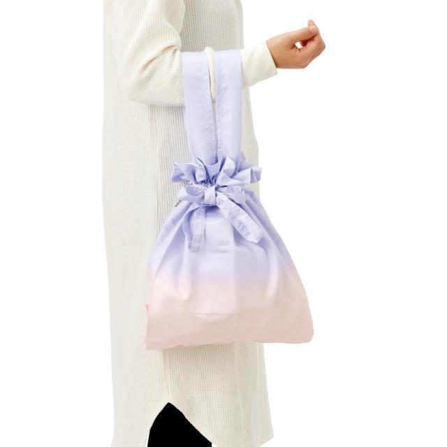 旅先の美しい情景をイメージしたニュアンスカラーです。巾着型なので、たっぷりの荷物も中身を見せることなく持ち運ぶことができます。