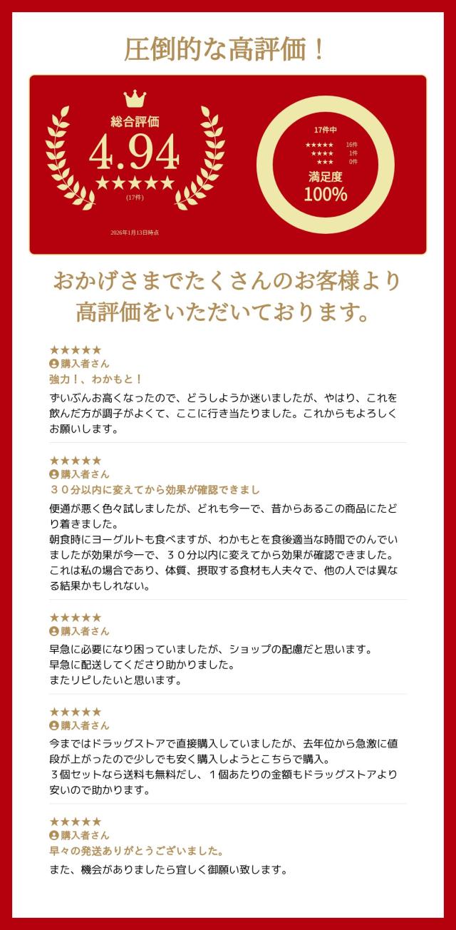 ※本剤は天然由来の原料を使用しておりますので、色・におい・味に多少の変動がある場合もありますが、服用に差し支えありません。