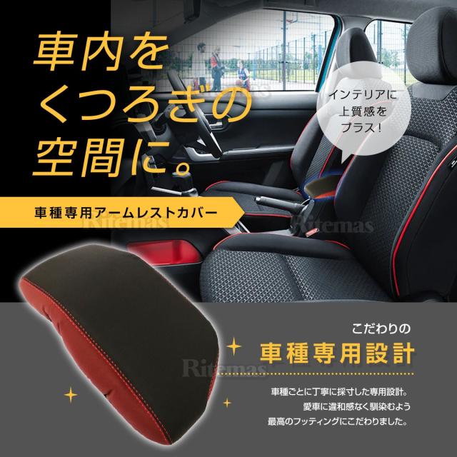 トヨタ ライズ A200 A210 ダイハツ ロッキー PVC レザー 肘置き カバー ブラック+レッド センターコンソールカバー アームレスト ボックス コンソール