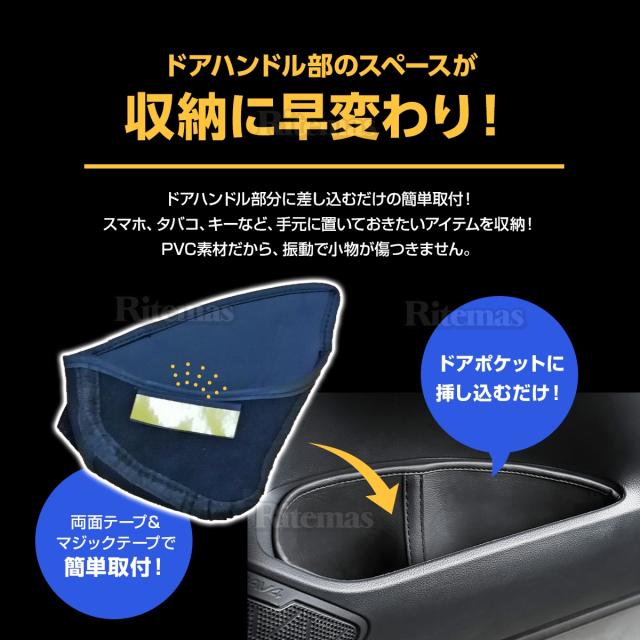 ドアハンドル部分に差し込むだけで便利な収納ポケットに早変わり。