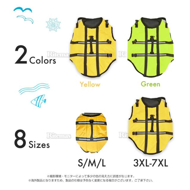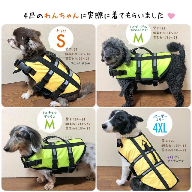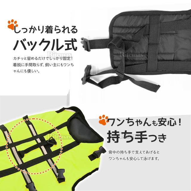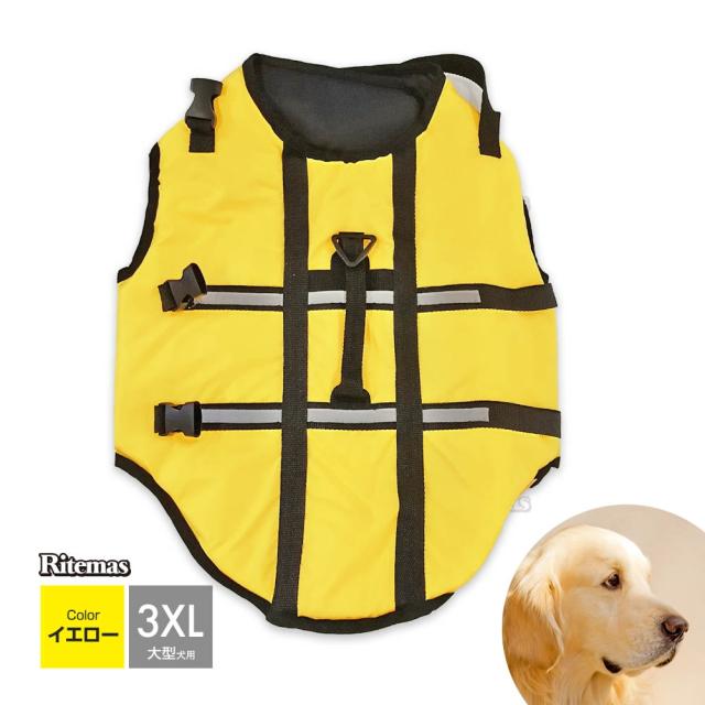 犬用ライフジャケット ライフベスト ライフジャケット 犬用 中型犬 大型犬 ペット ペット用ライフジャケット 簡単装着 ベルトハーネス 持ち手付き 海 川 海水浴 川遊び 3XLサイズ イエロー 黄色