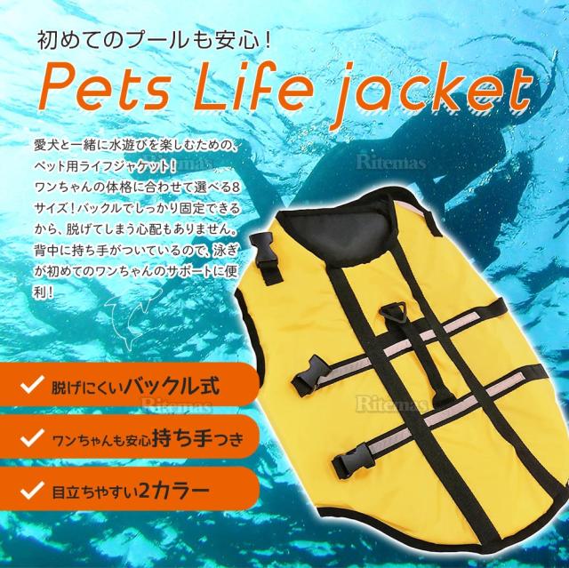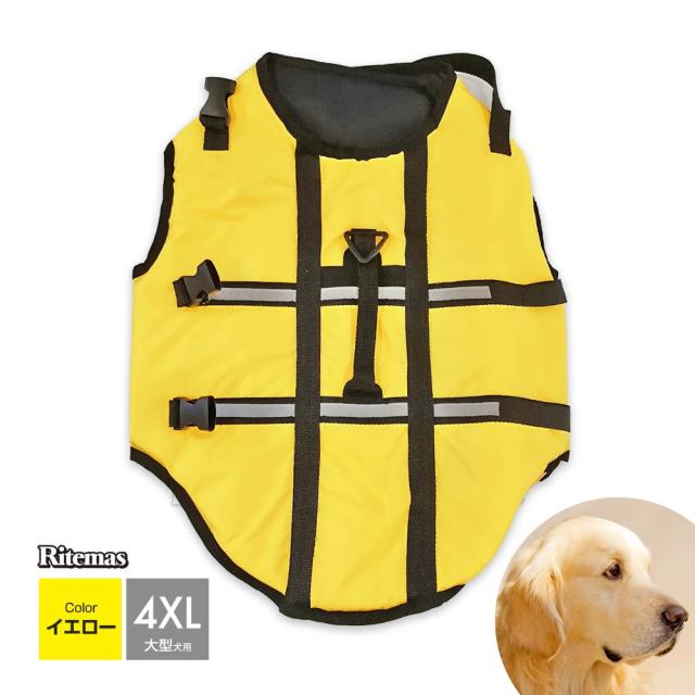 犬用ライフジャケット ライフベスト ライフジャケット 犬用 大型犬 ペット ペット用ライフジャケット 簡単装着 ベルトハーネス 持ち手付き 海 川 海水浴 川遊び 4XLサイズ イエロー 黄色