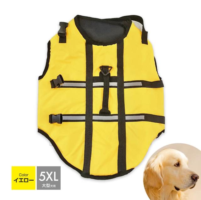 犬用ライフジャケット ライフベスト ライフジャケット 犬用 大型犬 ペット ペット用ライフジャケット 簡単装着 ベルトハーネス 持ち手付き 海 川 海水浴 川遊び 5XLサイズ イエロー 黄色
