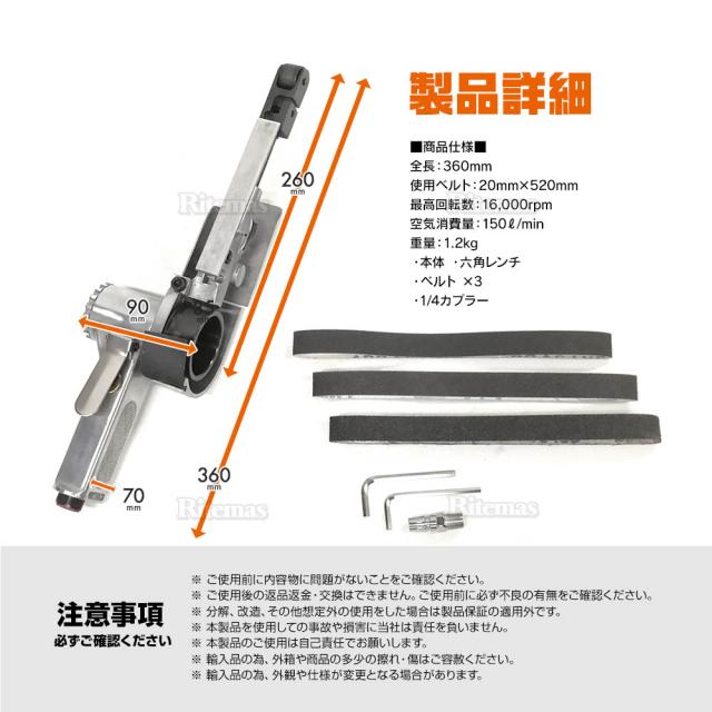 付属品:替えベルト3本、エアーカプラー、L型レンチ
