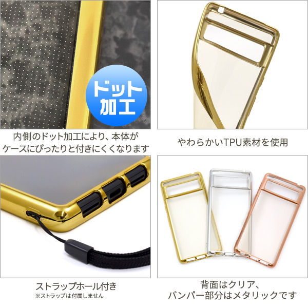 スマホケース Google Pixel 7専用 メタリック ソフトケース バンパー ケース 透明 クリア カバー スマホカバー ストラップホール シンプル オシャレ TPU 着脱簡単 ドット加工 やわらかい googlepixel7 グーグルピクセル7