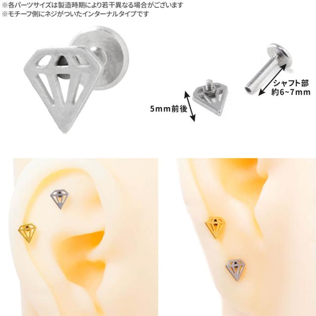 ダイヤモンド カット モチーフ ラブレット 16G サージカルステンレス ヘリックス トラガス 軟骨ピアス ボディピアス ラブレットピアス
