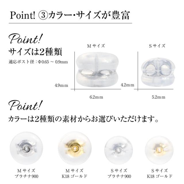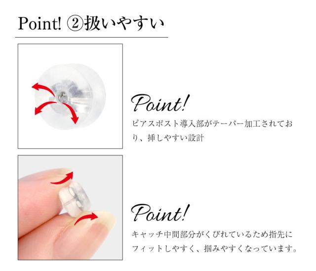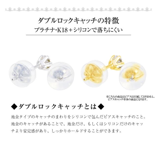 地金タイプのキャッチのまわりをシリコンで包んだピアスキャッチのこと。 地金のキャッチがあることで、地金だけ、もしくはシリコンだけのキャッチより安定感があり、しっかりホールドすることができます。