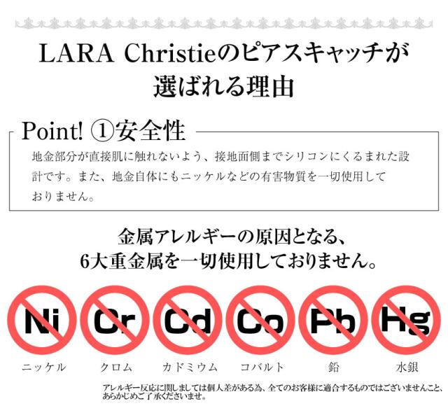 大切なピアスを守る、LARA Christie ダブルロックピアスキャッチ。