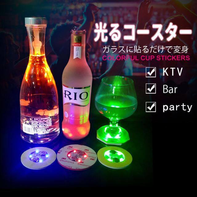 光るコースター 5個セット 光るステッカー 貼り付け 電池駆動 3点灯モード グラス ジョッキコップ シャンパンボトルなどに LEDCST05S