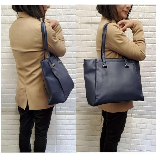 ・ショルダーの長さが調整できるトートバッグ。