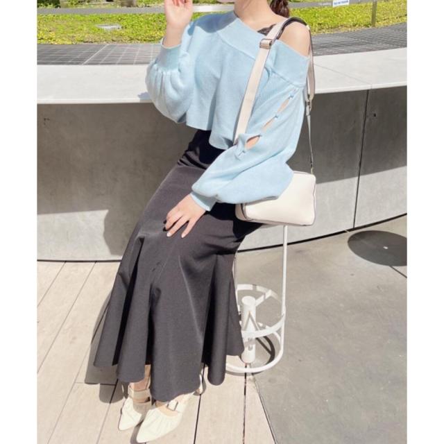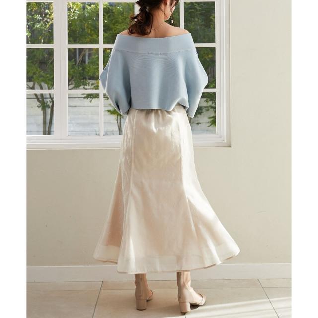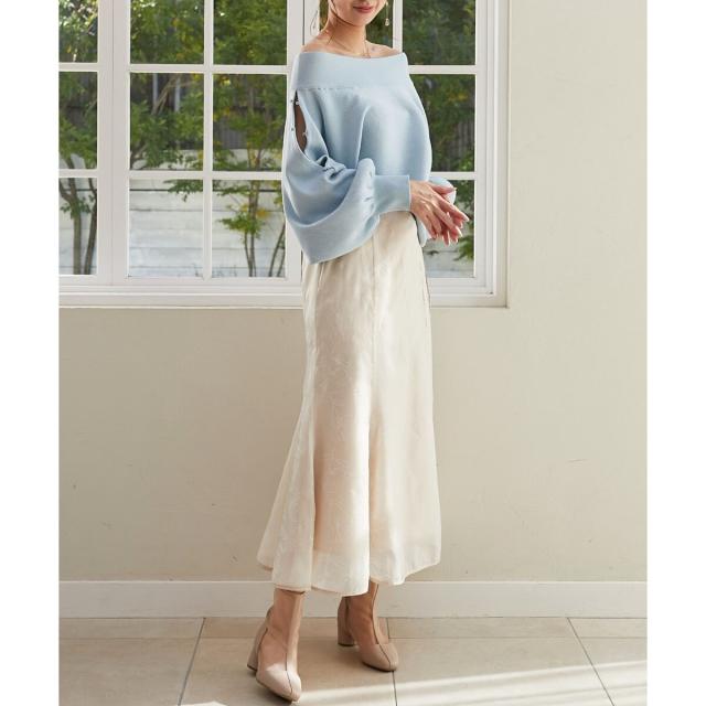 肩あきのプルオーバーとして着るのはもちろんオフショルニットとして着ることも出来る着回しデザインになっています。