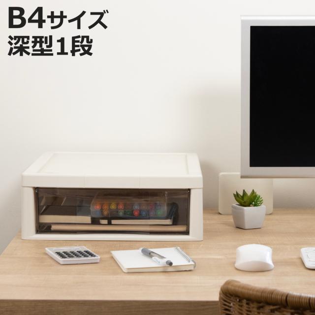 レターケース B4 深型 1段 書類ケース 書類整理 アプロス 幅32.3×奥行40.6×高さ12cm ( 書類 収納ケース 卓上収納 多段引出し ストッパー付き 日本製 整理整頓 棚 整理 収納ボックス 収納 透明 ケース コピー用紙 )