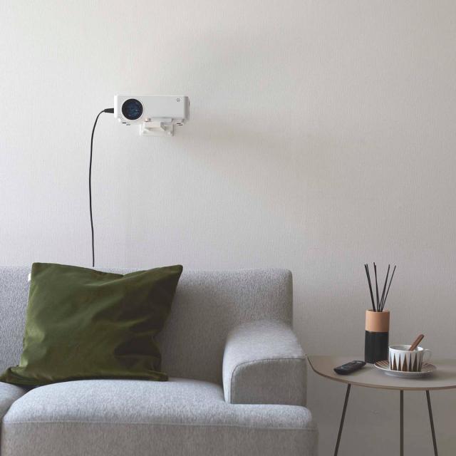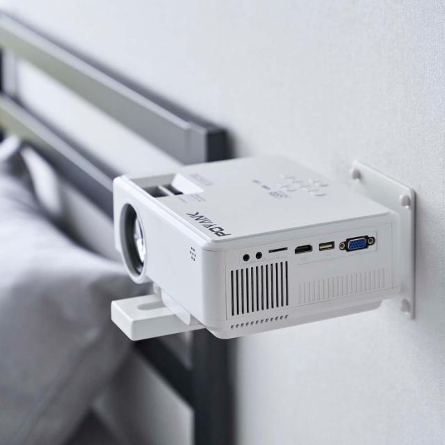 壁に浮かせて設置できるプロジェクターラックです。シンプルなデザインで、配置などを気にせずお好みの位置に取り付けいただけます。穴が目立たない石こうボードピンで壁に取り付けられます。耐荷重は約3kgです。