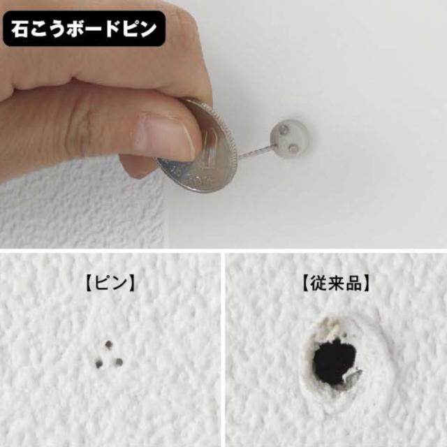 従来品で取り付けた場合と比較して、石こうボードピンでとめた場合、壁に空いた穴が目立ちにくいメリットがあります。賃貸や新築などでも安心して設置していただけます。
