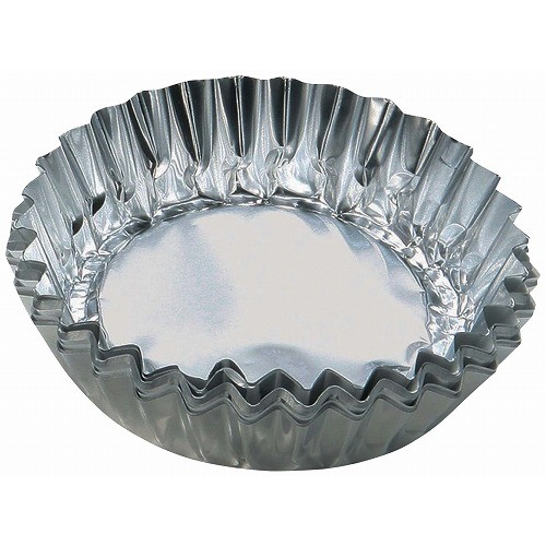 縁が花びらのように波型になっている、やや浅型の純度の高いアルミ箔です。マドレーヌやタルトレットの生地を流し込んでそのままオーブンに入れるだけ。