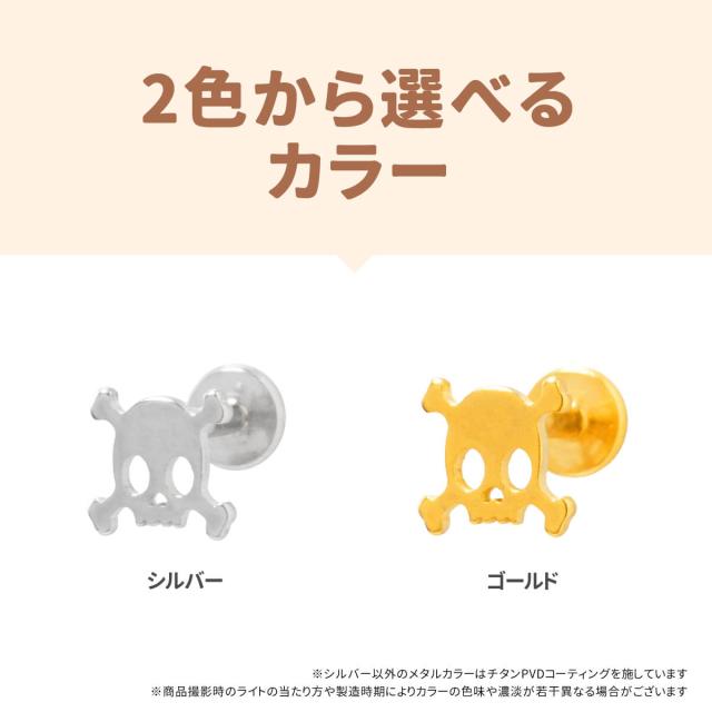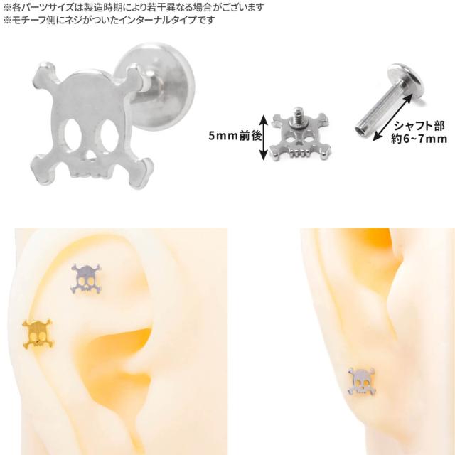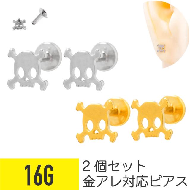 2個セット ドクロ モチーフ ラブレット 16G サージカルステンレス ヘリックス トラガス 軟骨ピアス ボディピアス 髑髏 がい骨
