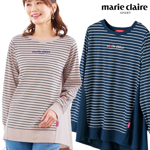 マリ・クレール スポール 切替ボーダープルオーバー カジュアル ナチュラル 後ろ丈長め 秋冬春 レディース 婦人服 961533